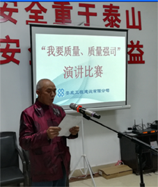 2017年11月17日晚,公司在機關辦公室大會議室舉辦了一場別開生面的“我要質量,質量強司”演講比賽。共有16位項目經理上臺發表了主題演講。經過評委現場打分評定,來自百弘學府城的項目經理李朝陽榮獲一等獎;公司江龍灘基地項目經理李紅暉、雙峰三塘鋪獨立工礦區現代產業園蜉化器項目項目經理謝晃分獲二等獎。