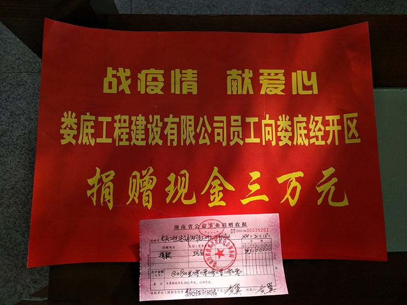 戰(zhàn)疫情,獻愛心!婁底工程建設(shè)有限公司員工積極響應(yīng)公司號召,踴躍奉獻愛心。2月18日,公司工會主席羅堅代表公司將3萬元的員工捐款交給了婁底經(jīng)濟技術(shù)開發(fā)區(qū)社會事務(wù)局,以實際行動支持疫情防控工作。
