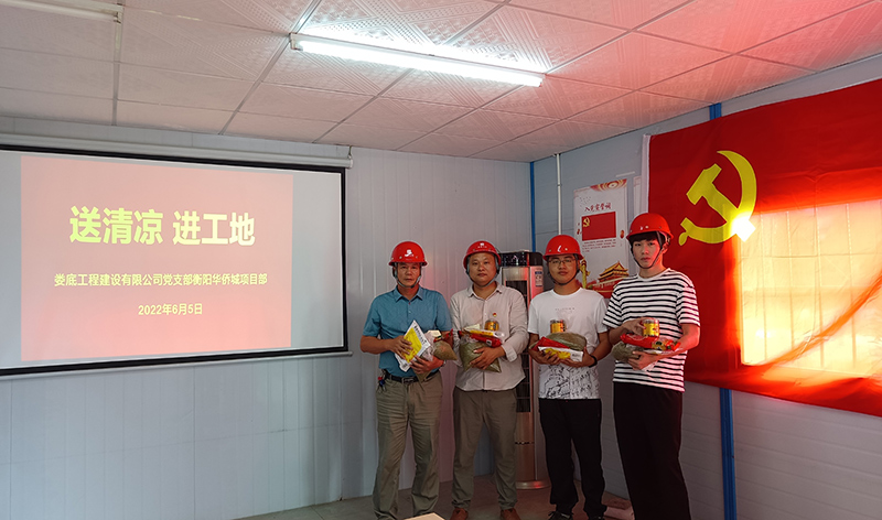 炎炎夏日,揮汗如雨。為保障員工的身體健康,確保全體員工全身心投入到安全生產(chǎn)工作中,65日,公司黨支部到衡陽(yáng)華僑城項(xiàng)目部開(kāi)展了“送清涼 進(jìn)工地”慰問(wèn)活動(dòng)。