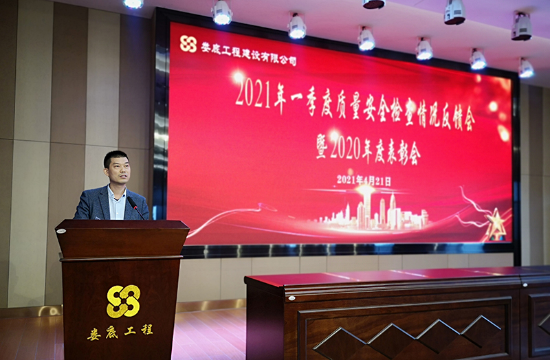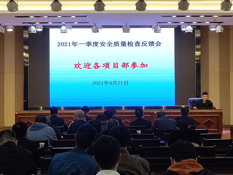 2021年4月21日9點,公司在多功能會議廳召開2021年一季度質量安全生產檢查情況反饋會暨2020年度表彰會。公司董事長張愛慧、黨支部書記林有良、總經理胡勁、副總經理彭洪偉、副總經理顏克靈、總經理助理姜建輝、財務總監戴文彬出席了此次會議,機關員工及項目部管理人員100余人參加了此次會議。